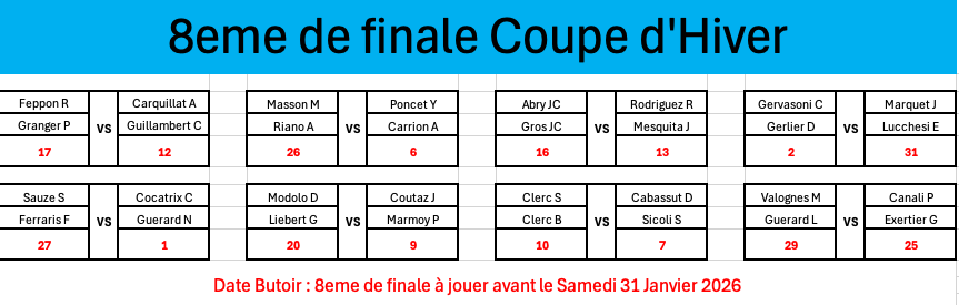 Une fois encore les jeunes (retraités) des clubs de Vallières, Alby et Rumilly se sont réunis mardi 3 mars pour manger le cassoulet et accessoirement jouer 5 parties. A l’issue de ce périple, le challenge a été remporté par le club de Vallières avec 25 parties gagnées (62,5% des parties jouées).
